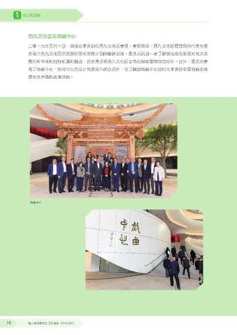 1 成立和職能 西九文化區及戲曲中心 二零一九年五月十日,城規會委員前往西九文化區參觀。參觀期間,西九文化區管理局的代表向委 員簡介西九文化區的發展和落實發展計劃的最新進度。委員從而進一步了解到在規劃和落實有關發 展時所帶來的獨特機遇和挑戰,還親身試乘西九文化區全電動智能零排放自動車。此外,委員亦參 觀了戲曲中心,除對中心的設計有更深入的認識外,也了解到戲曲中心如何為本港的中國戲曲團體 提供世界級的表演場地。 戲曲中心 18 城市規劃委員會工作報告 2018-2020